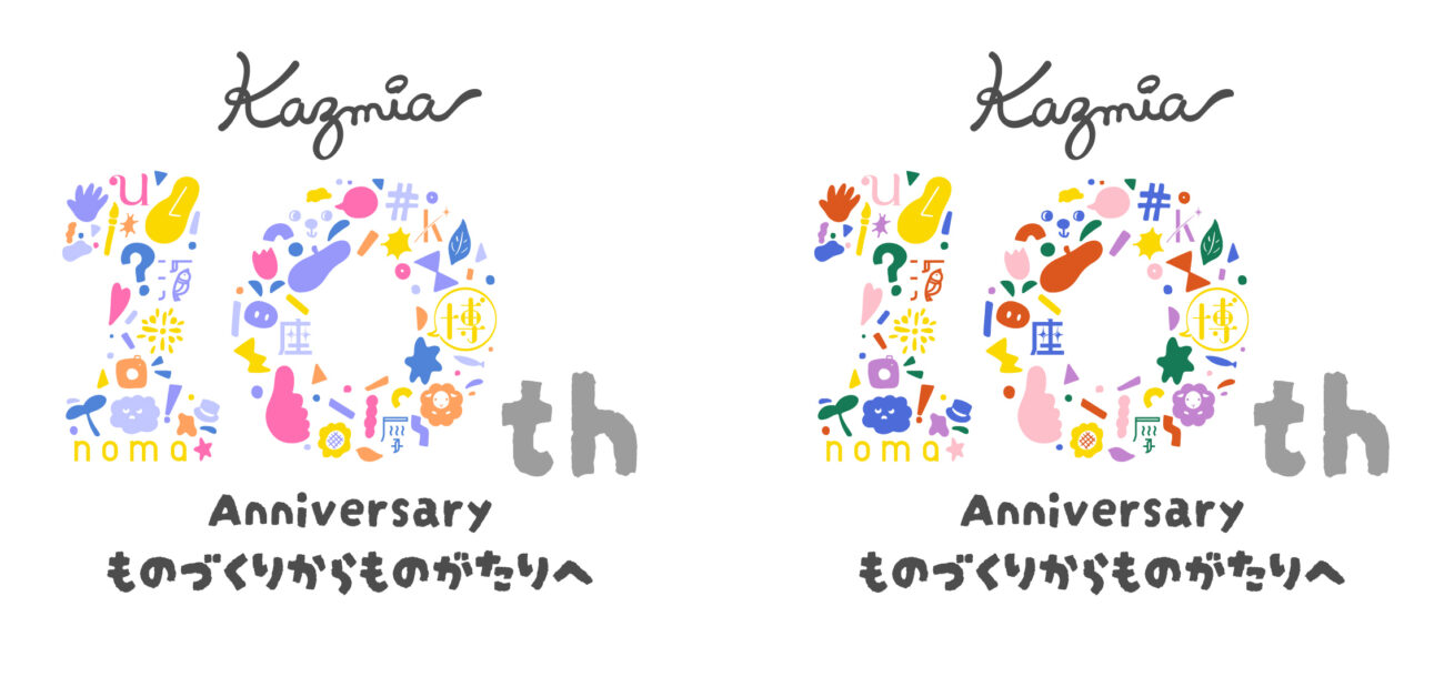 「ものづくりからものがたりへというメッセージ」「10年という時の流れ」「カズミアのこれから」の3つを起点にロゴの案を出していきました。