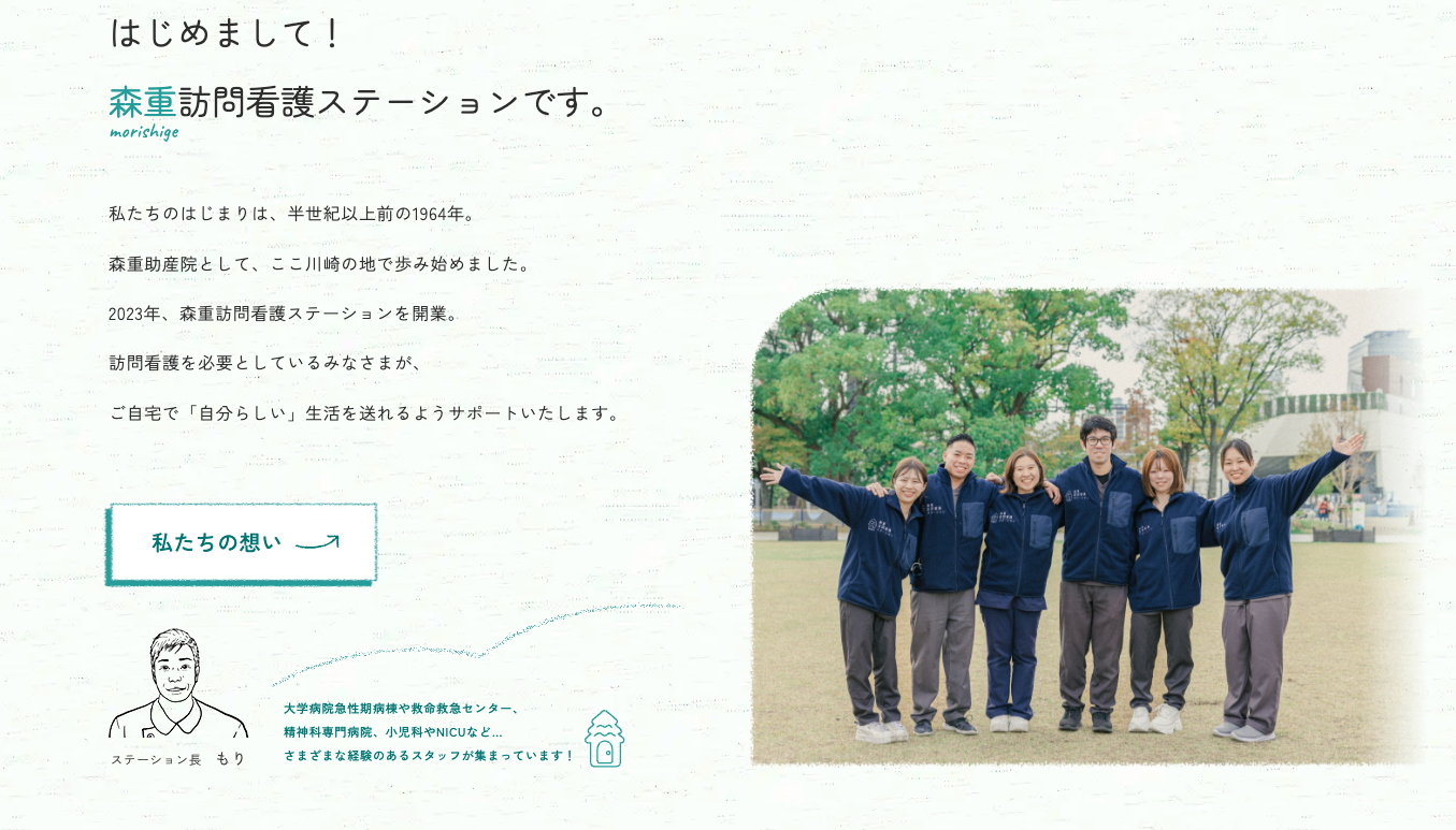 川崎市で訪問看護を行う森重訪問看護ステーションさまのホームページ制作をお手伝いしました。