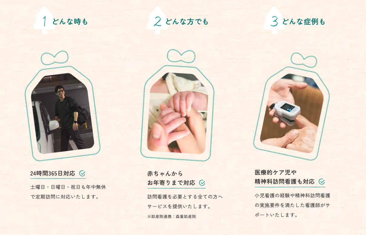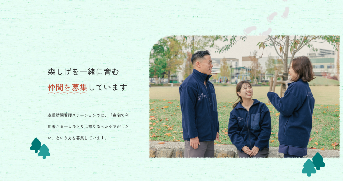名前と雰囲気が結びつくことで、森重訪問看護ステーションさまの印象が、自然とあたたかく心に残るようにしています。