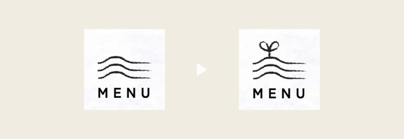 メニューのアイコンはカーソルをかざすと、土から芽が生えたようなアニメーションを実装。