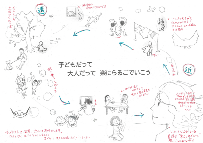 今回はイラスト制作もお任せいただいていたため、ラフ制作に入る前に、まずはコンセプトを言語化し、ご提案しました。