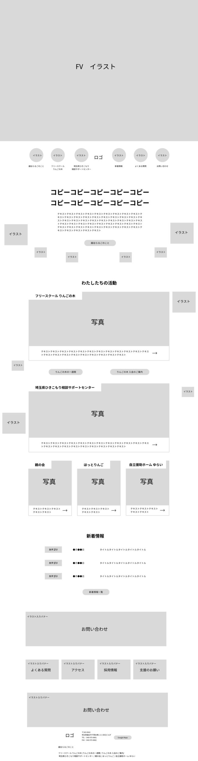 また、トップページ内の「フリースクール りんごの木」紹介部分に使用しているイラストは、事務長である加納さまに描いていただいたものです。
