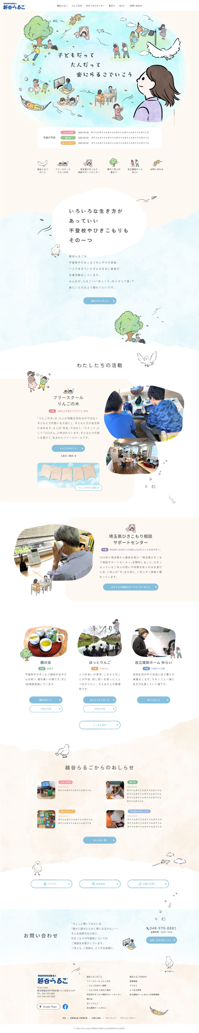 今回ご紹介するのは、埼玉県越谷市でフリースクールを運営し、不登校・ひきこもり支援に取り組まれている、特定非営利活動法人 越谷らるごさまのWebサイトリニューアルです。