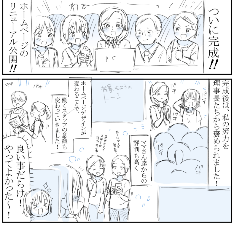 “当社のこれまで と これから”をお伝えするコンテンツページに使用するための漫画イラストを作成しました。
