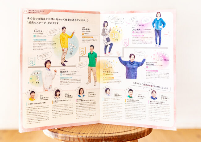 これらのコンテンツをパンフレットに盛り込むことで、求職者の家族は企業への理解を深め、安心して預けられると感じ、内定承諾へと繋がります。